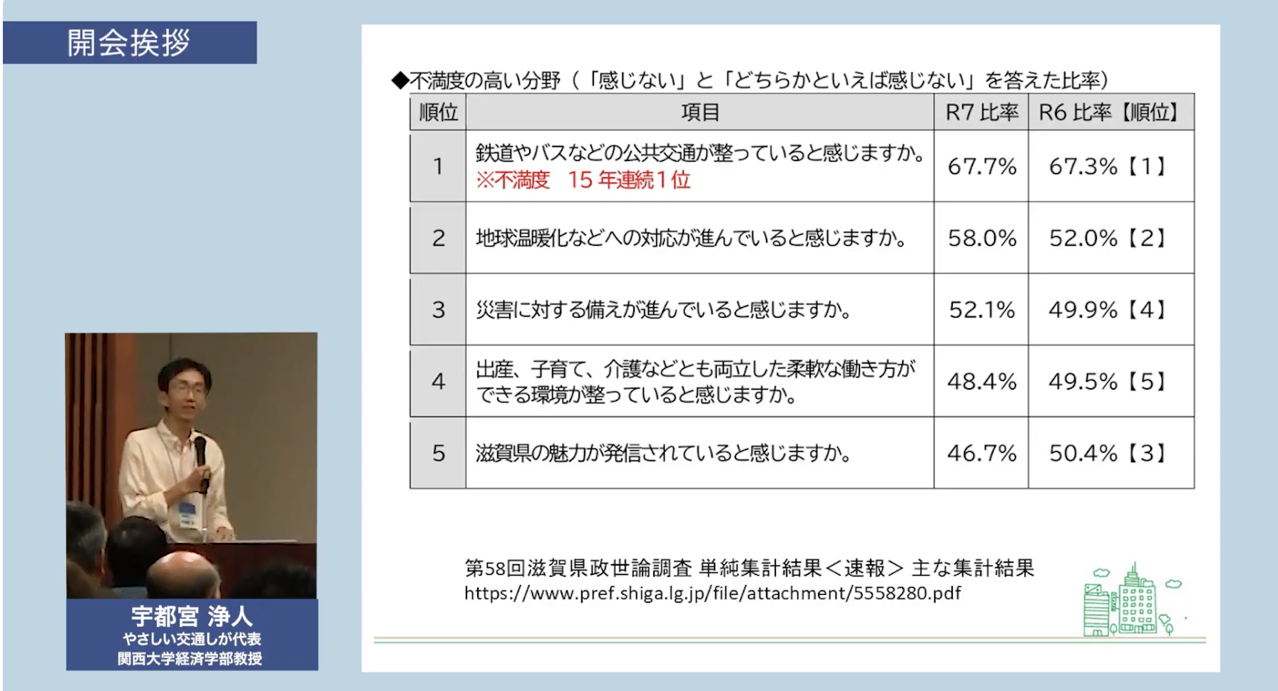 滋賀県の公共交通に関する不満は15年連続ワーストワンでした。日々、不便を感じる住民のフラストレーションは高まっている結果なので、これもなんとかしなければなりません。