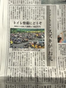 - 2.3 日本海新聞 5月11日 ライダーもてなしにスズキがお礼 トイレ整備にどうぞ 八頭町に1850万円