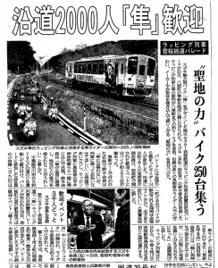 - 2.3.13 日本海新聞 3月21日 沿道2000人 歓迎 聖地の力バイク250台集う