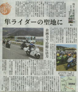 産経新聞 9月4日 快走!若桜鉄道 上 隼ライダーの聖地に 企画力で沿線に活力