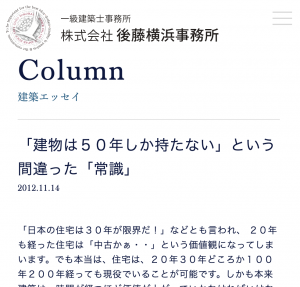 名著探訪 The Death and Life of Great American Cities (日本都市計画学会) - 2 住宅の長寿命化に関するレポートより、木造住宅の平均寿命(64年)と「200年住宅」の概念。