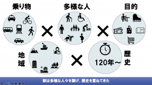 公共交通×子ども達・学生のアイデアを融合したすごろくカードゲームなどを通して食・技術・歴史の地域資源が豊かなマチと気づきを得て、誰もが活躍するきっかけを生み出せる『おみやげ』作りを目指す。