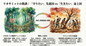 今回は、1992年にブラジルで開催された「リオ地球サミット」に焦点を当てます。なぜ「地球を守る」という議論の中に、わざわざ「社会」という新しい柱を立てなければならなかったのか。その背景にある、世界規模の対立と妥協、そして発見の物語です。