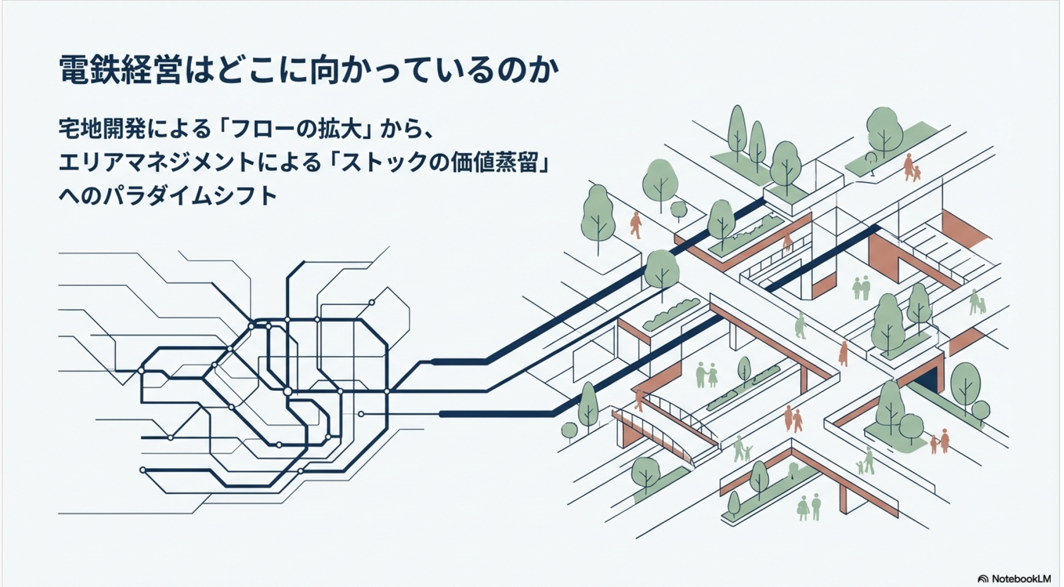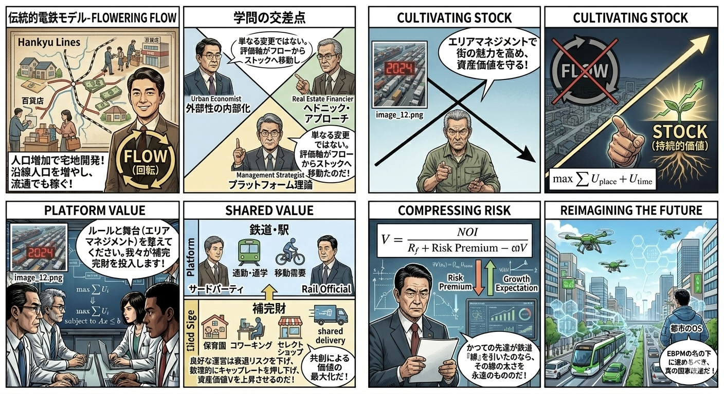 - 現代:成熟社会における「エコシステム(生態系)経営」。エリアマネジメントを通じて他者の投資や居住を誘発し、エリア全体の「ブランド力」を高めることで、自社の鉄道や不動産事業の持続性を担保する戦略です。