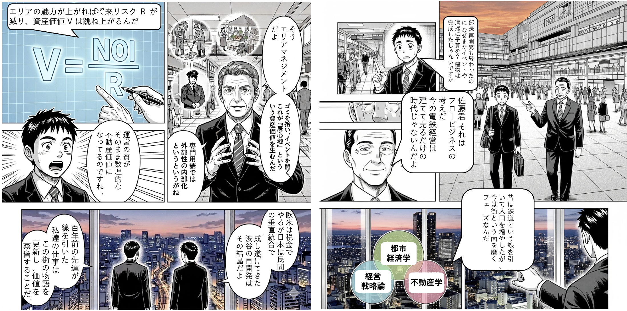 これからの鉄道経営において、エリアマネジメントは「コスト」ではなく「資本」です。2024年問題や人口減少という厳しい制約の中で、物理的な「形態」を増やす投資は慎重にならざるを得ません。だからこそ、今ある資産の「キャップレートを理論で押し下げる」という、極めて知的なガバナンスが求められています。