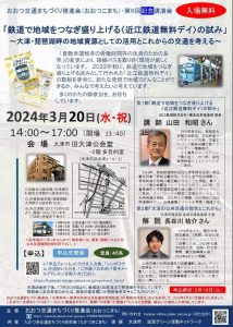 日本民営鉄道協会会、おおつ交通まちづくり推進会、KOARA、交通ビジネス塾、北海道鉄道文化保存会、金沢・LRTと暮らしを考える会、別府鉄道キハ2号を守る会、人と環境にやさしい交通まちづくりプラットフォーム滋賀、びわこ京阪奈線(仮称)鉄道建設期成同盟会、など