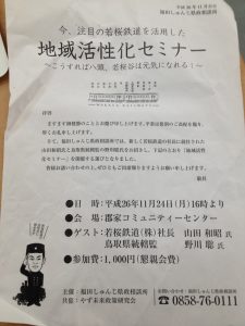 鳥取市歴史博物館、たくみ21(鳥取市)、福田しゅんじ県政相談所、伝七邸ESDスクール(四日市市)、光澤寺(八頭町)、旅ジャーナリスト会議、稲門鉄道研究会、国道29号線沿線広域協働活動準備委員会、ヘアスペースブルーム、青春21文字のメッセージ展、びわ湖芸術文化財団など