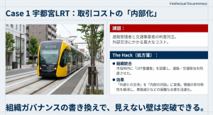 次回は、この取引コストという壁を、知恵と工夫で乗り越えた具体的な事例に焦点を当てます。宇都宮LRTや若桜鉄道が、どのようにして既存の法域の壁をハック(最適化)し、新しい経路を切り拓いたのかを詳しく分析します。