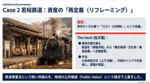 従来の交通政策では、鉄道は単なる移動手段として定義され、収支が合わなければ赤字のコストとして処理されます。しかし、若桜鉄道は駅舎やSL(蒸気機関車)を地域の歴史的文化財として位置づけ、さらに駅をバイク乗りの聖地にするなど、鉄道を地域を売り出すプラットフォームへとリフレーミング(物事の見方を変えること)しました。