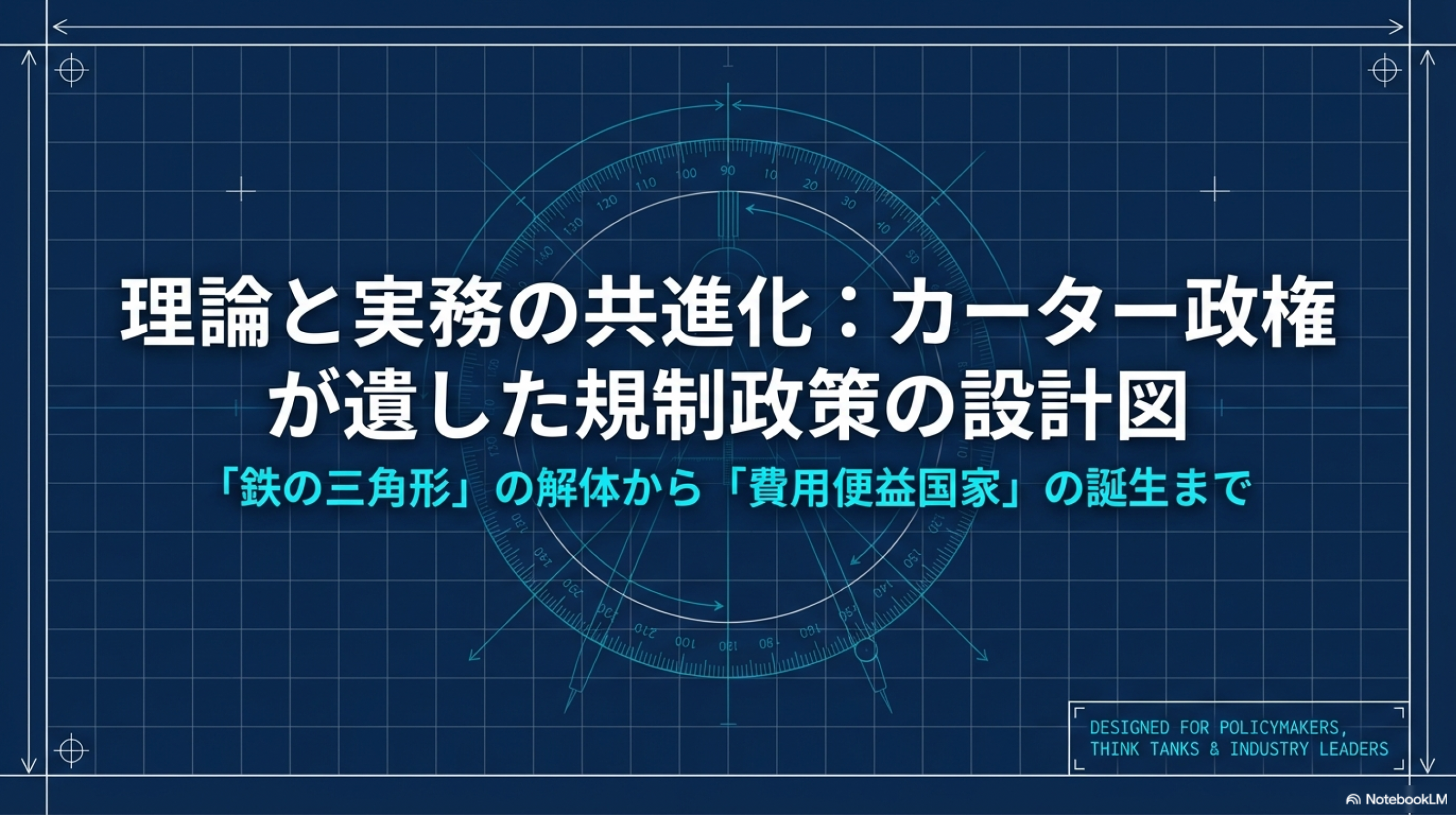 スティーブン・ブライヤー氏による「規制の不整合」という概念に基づき、画一的な統制から市場規律を活用した制度設計への転換プロセスをシンセシスしています。理論が単に政策を規定したのではなく、安全性維持のための監視強化や、独占傾向への対応といった実務上の課題が、コンテスタビリティ理論や外部性の内部化といった学説をより現実的で精緻なものへと進化させたダイナミズムを特定しました。これは、行政の裁量を市場の自己修正機能へと段階的に委ねていく高度な政策体系の構築過程であったと考えられます。