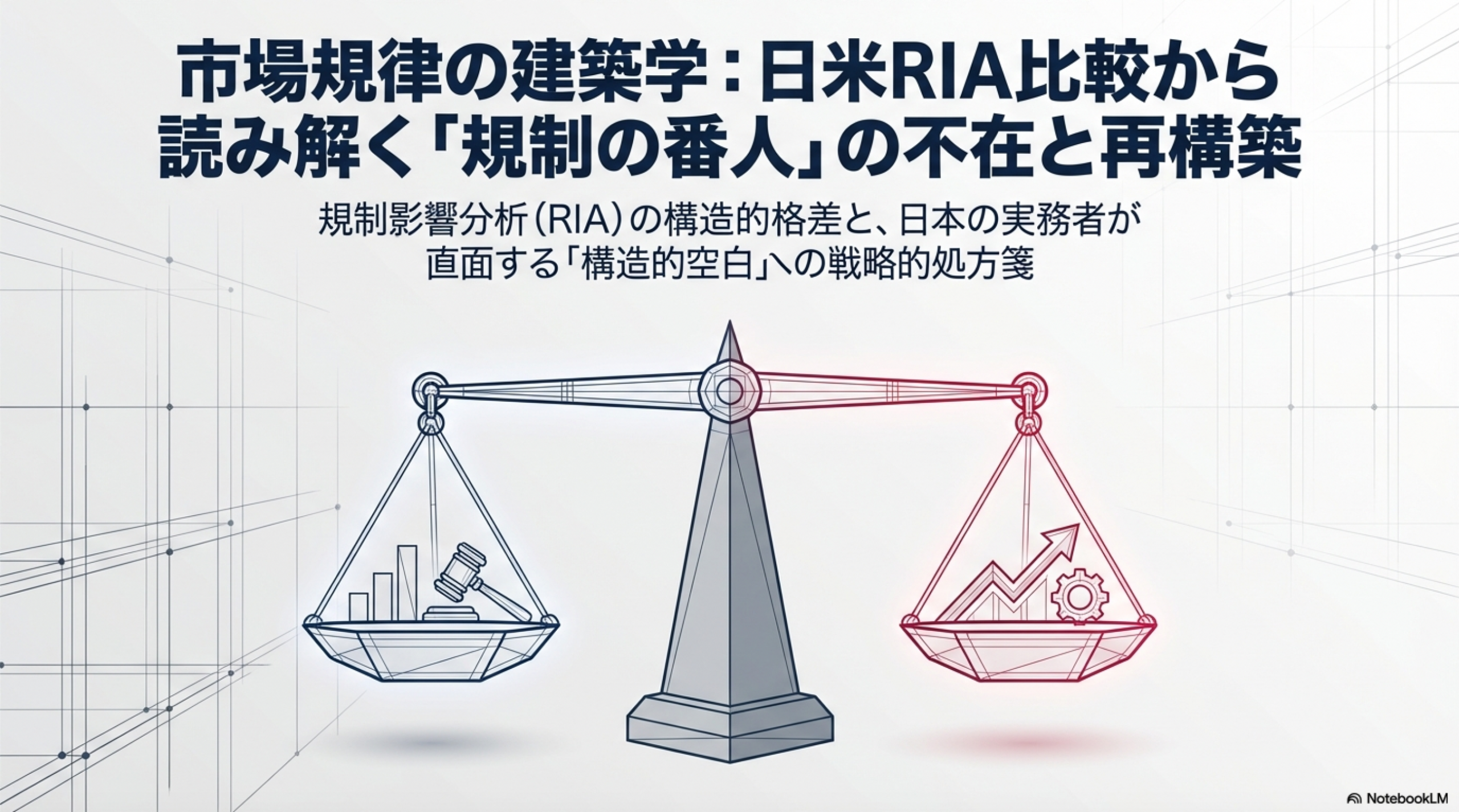 【ラジオ】10対1ルールと日本のザル審査日米の規制影響分析RIA)を比較すると、市場規律を維持するための体制に決定的な差があります。PhDエコノミスト集団と強力な「差し戻し」権限を擁する米OIRAに対し、各府省の自己評価を原則とする日本の体制は、形式的な透明性確保に留まりやすい構造的課題を抱えています。最新のトランプ政権による「10 for 1」ルールの衝撃など、激変する米国の動向を踏まえ、日本の実務が向かうべき方向を分析します。