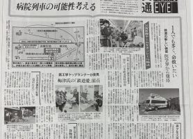 5月4日から10日 大阪万博 9:00-21:00 大規模災害を救う「病院列車構想」Rail-DiMec 出展 当日は、救急車とコンテナの模型を持ち込み、動画を上映し、来場者への説明を行いました。 また、同じフロアには、 …