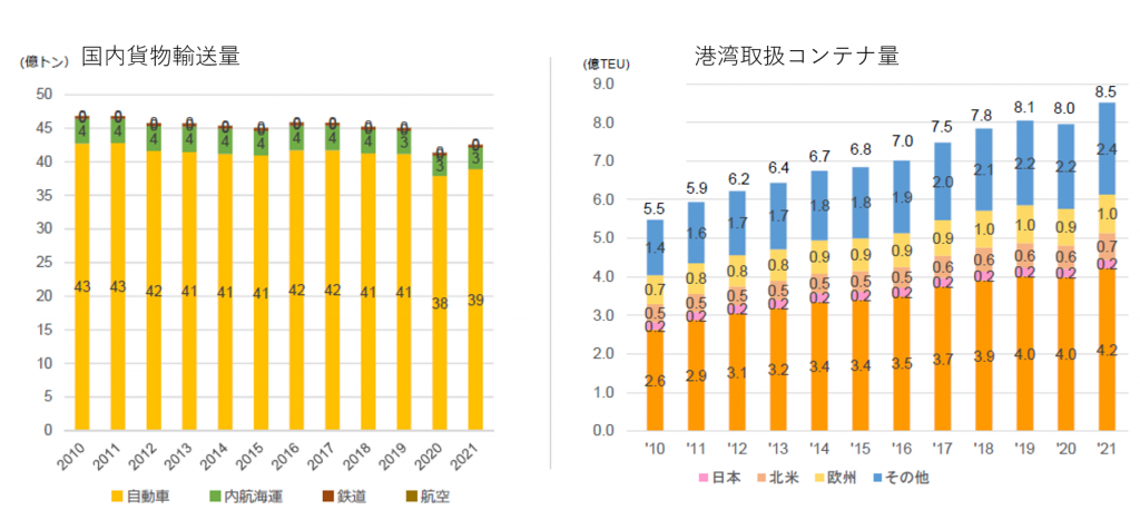 ここ14年間、日本国内の貨物輸送量は微減傾向です。それに対して、世界の国際コンテナの取り扱い量は増加を続けています。一体これは何が起きているのでしょうか?