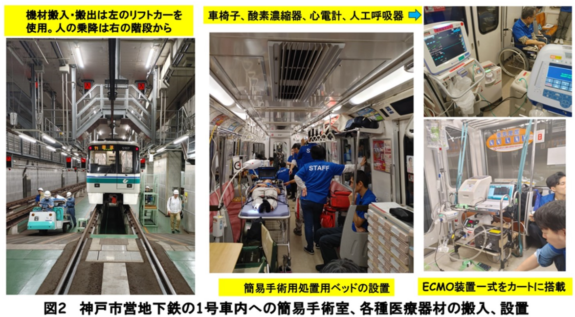 2023年11月に神戸市営地下鉄の協力を得てDMATの近畿ブロック訓練の一つとして、初めて鉄道を使う訓練が計画され、神戸市交通局海岸線5000形(4両編成)の地下鉄の2~4号車で、DMAT4隊、模擬患者30名を動員して行われた。