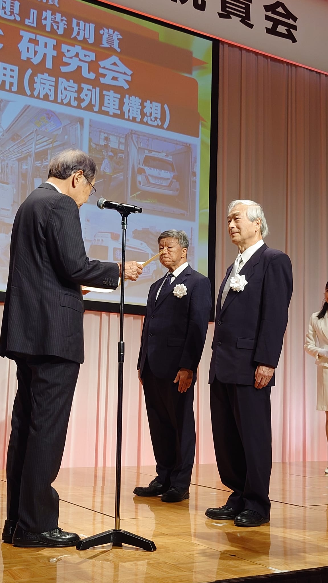 災害医療の輸送手段として、「鉄道の新たな価値」を提唱した「鉄道の災害医療への活用」(病院列車構想)に、「病院列車構想」特別賞が授与されました。