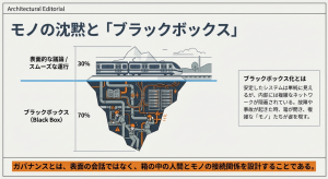 - 実務への影響: 第4レイヤー(主体的運営組織)において、失敗をシステムのせい(モノのせい)にしてしまい、人間の主体的な反省やガバナンスが疎かになるリスクがあります。