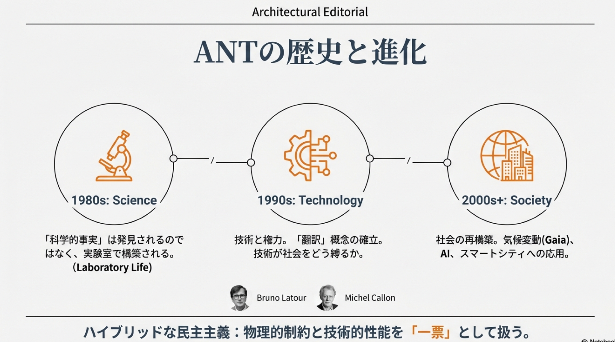 アクターネットワーク理論(ANT)の歴史は、1980年代初頭のフランスに端を発します。それは単なる新しい理論の登場ではなく、科学や技術がどのようにして『真実』や『事実』として確立されるのか?という科学社会学(STS)の過激な問いから始まりました。