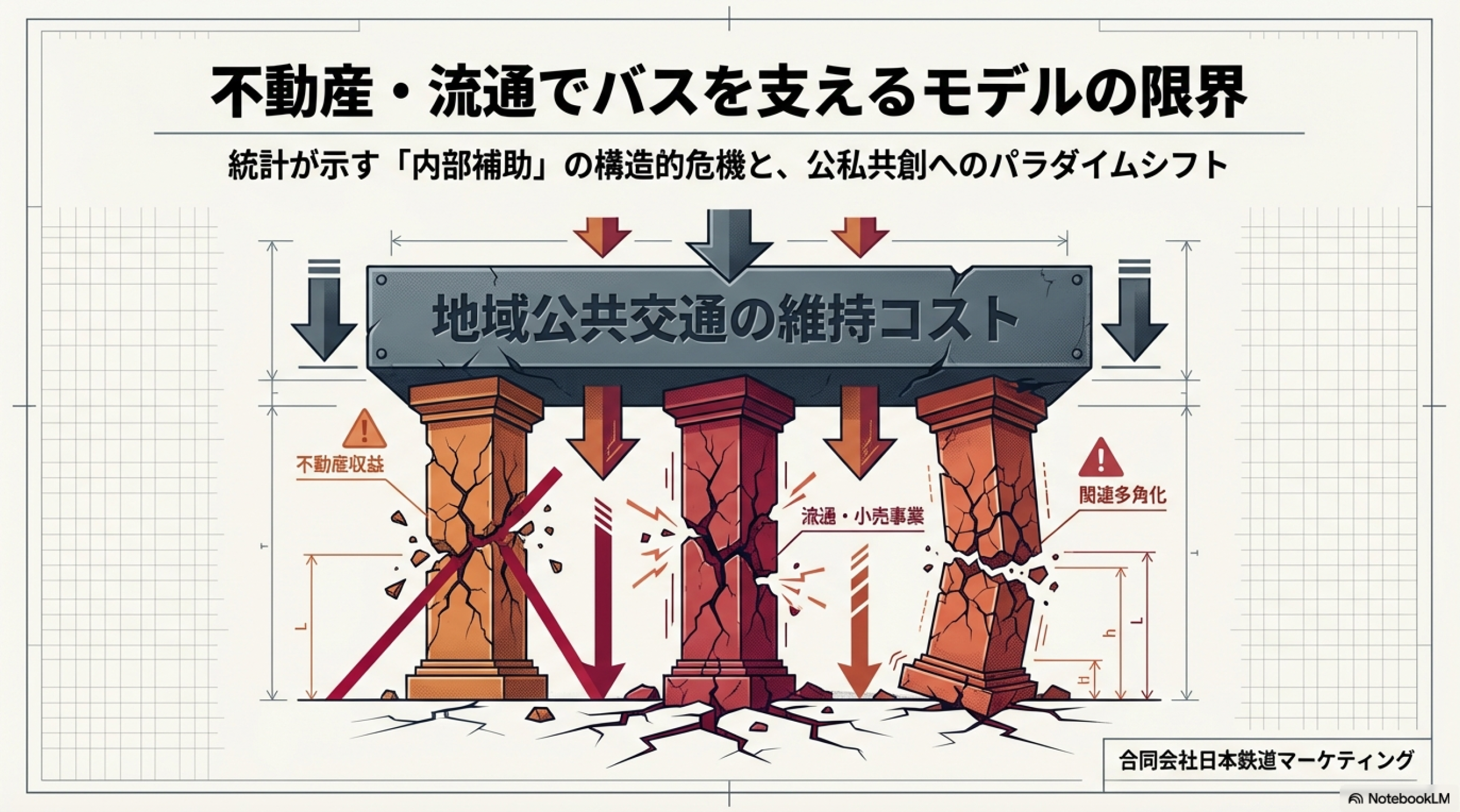- 相乗効果(外部性)の喪失: バス路線を維持することが、不動産価値の維持や流通事業の集客に寄与しないと判断された場合。