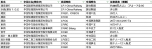 さて、このように都市計画・交通計画・設計・建設・運営・運行を進化・大拡大させてきた中国ですが、どのような企業がこれらを担っているのでしょうか?一帯一路で海外のプロジェクトに参画する企業からその親会社などを辿ってみると、右図(クリックして拡大)のような企業が見えて来ました。巨大な国営組織が2000年に政商分離で組み替えられ、民営化され多様です。以下のリンクは中国語版 Wikipediaです。