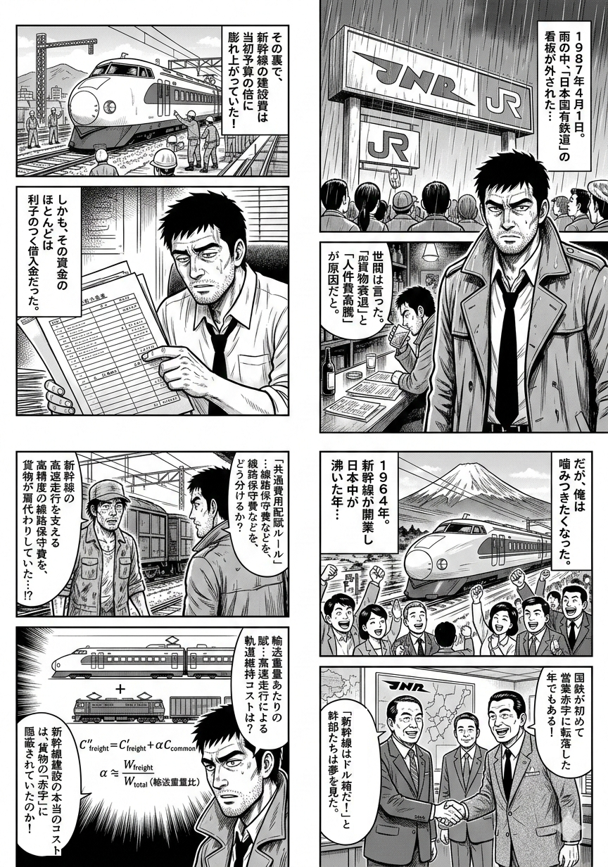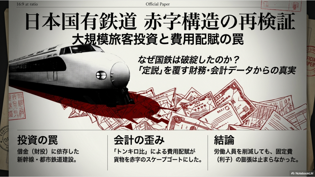 本報告書では、これら大規模旅客投資が国鉄の負債構造に与えた影響を分析し、特に旅客・貨物間の「共通費用配賦ルール」が、貨物部門の収支を恣意的に悪化させ、結果として投資判断の失敗を隠蔽する役割を果たしていた可能性を解説する。