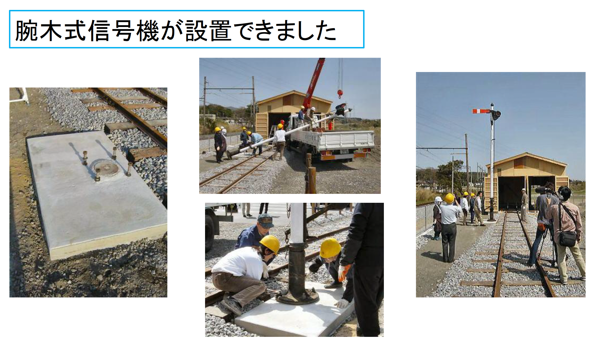 2004年1月26日 まで、JR名松線家城駅で使用されていた腕木式信号機を、JR東海より軽便鉄道 博物館に譲渡され、建植・保管されています。博物館は三重県いなべ市にあり、前回の終着駅サミットの開催地でもありました。鉄道趣味を持つ訳でもなく、地域を守りたいという思いから線路を敷きミニ列車を走らせ、本物の電車も保存されています。