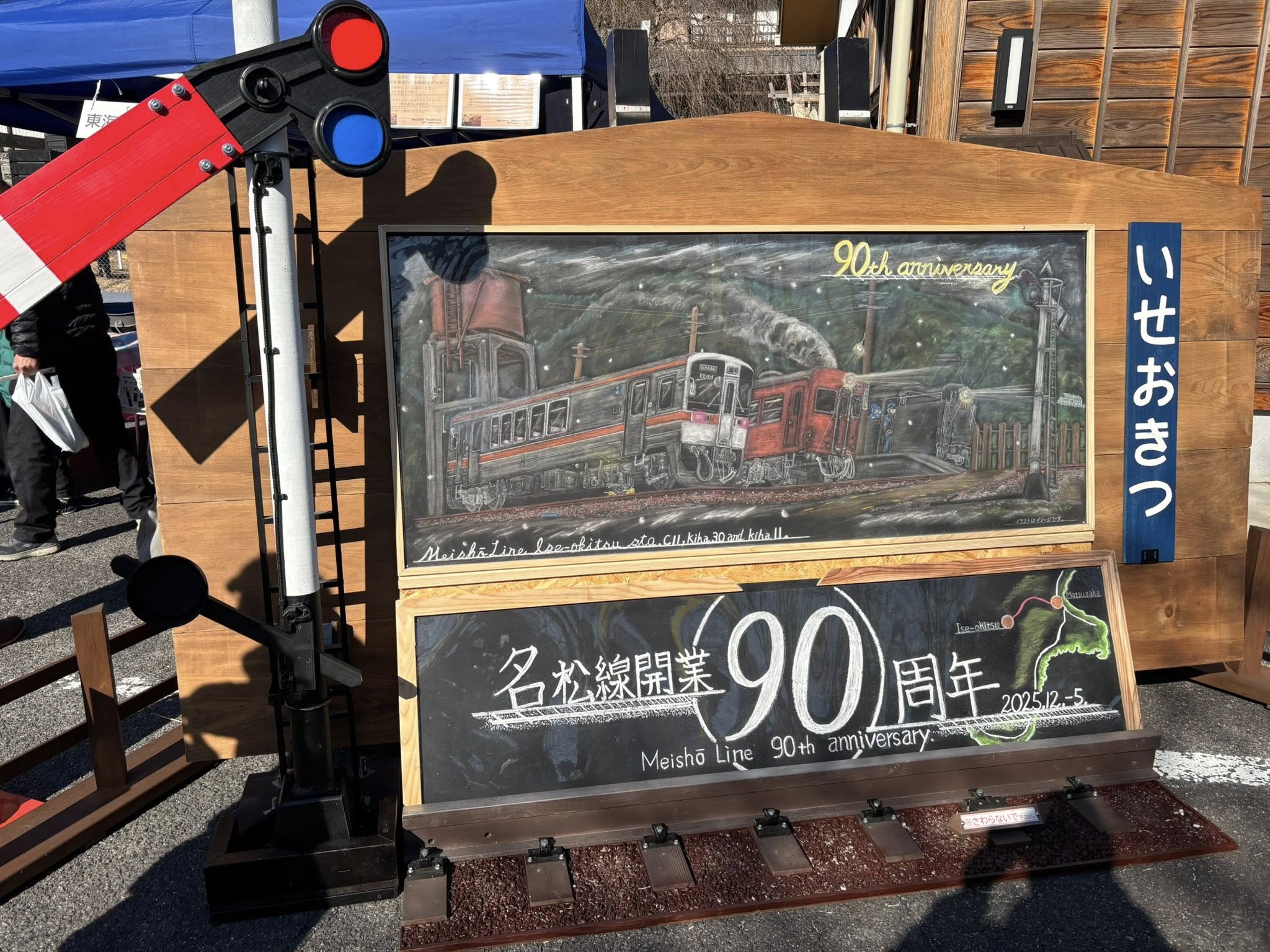 2025年12月7日、表記イベントに参加しました。普段は閑散とした伊勢奥津駅(いせおきつ)は、多くの人で賑わっていました。記念ヘッドマークステッカーは沿線の白山高校生がデザイン。