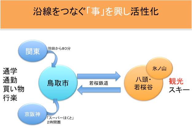 さらに、若桜線は県庁所在地の鳥取市と中山間地を結ぶ鉄道のため、阪急など大手私鉄が行ってきた、ベッドタウン開発、レジャー開発、デパートなどの商業開発のミニ版を行うことができます。自己資本では投資ができませんが、既存の資本と提携することで輸送需要を作り出したり地域経済を活性化することも可能です。