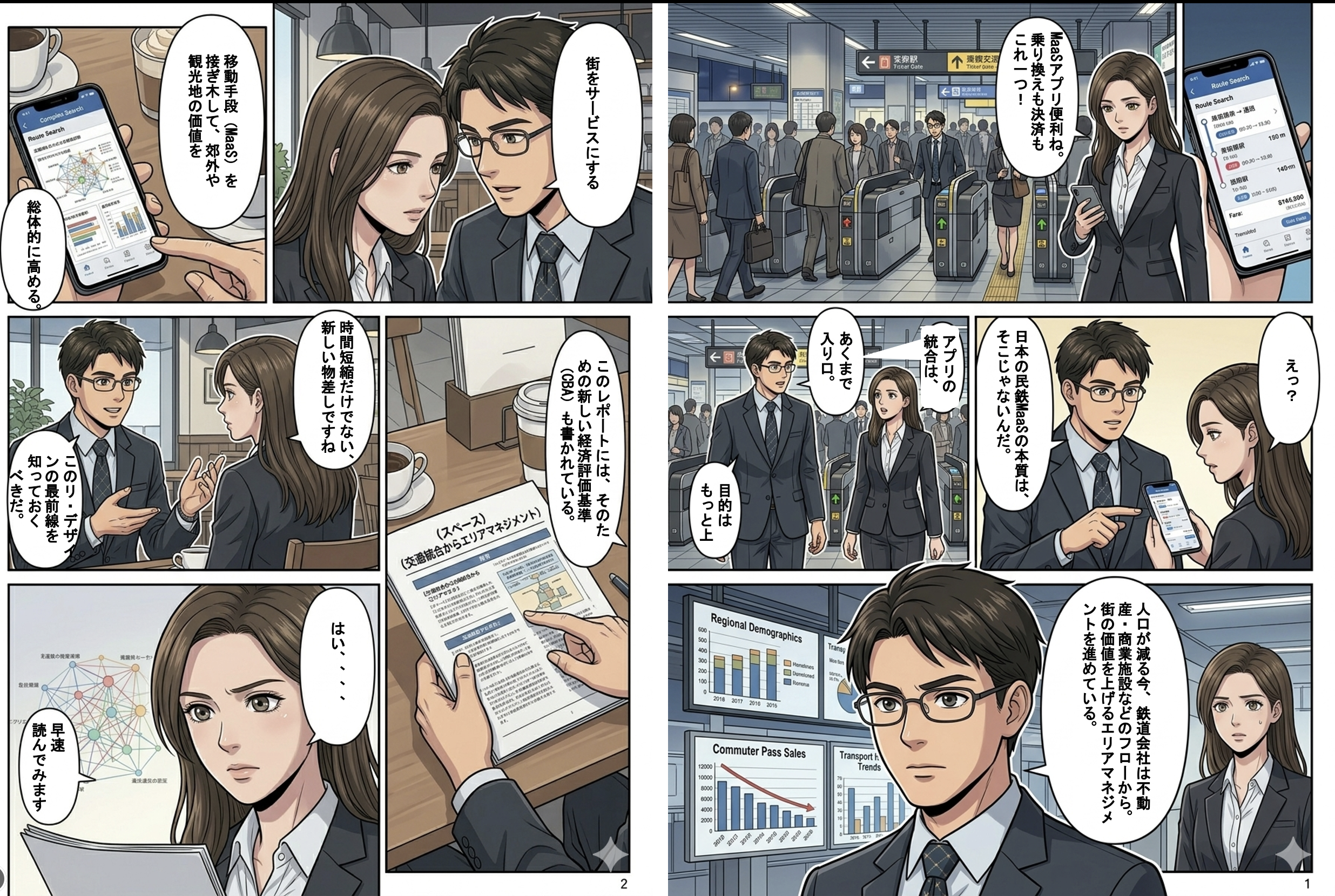 民鉄が単なる「移動手段のアプリ統合(交通統合)」から、なぜ「まちづくり・地域共創エリアマネジメント)」へと移行する必要があるのか。その論理的根拠を、経済的、政策的、社会的な3つの観点から詳述する。