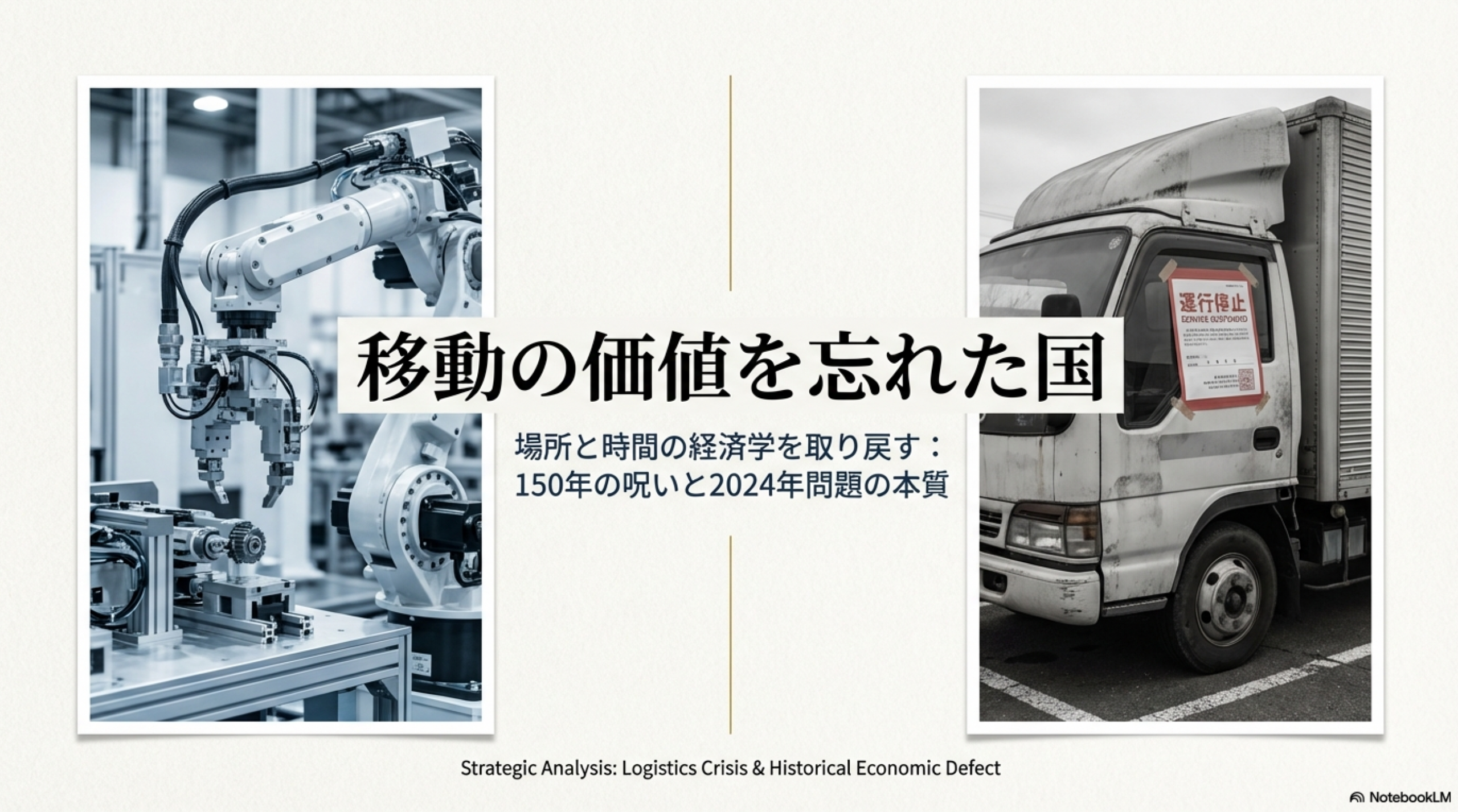 なぜ日本の交通や物流は、これほどまでに疲弊してしまったのか。その正体は、明治以来私たちが「モノを作る(形態)」ことと「売る(所有)」ことに心血を注ぐ一方で、その間にある「移動(場所・時間)」の価値を定義し忘れてきた150年の空白にあるのかもしれません。本シリーズでは、経営学や歴史の断片から、移動を「気合い」で代替可能な雑用とみなす日本文化の原因は学問の空白であると仮説を立て、過去の事象と検証し、2024年問題を乗り越えるための新たな視座を提示します。