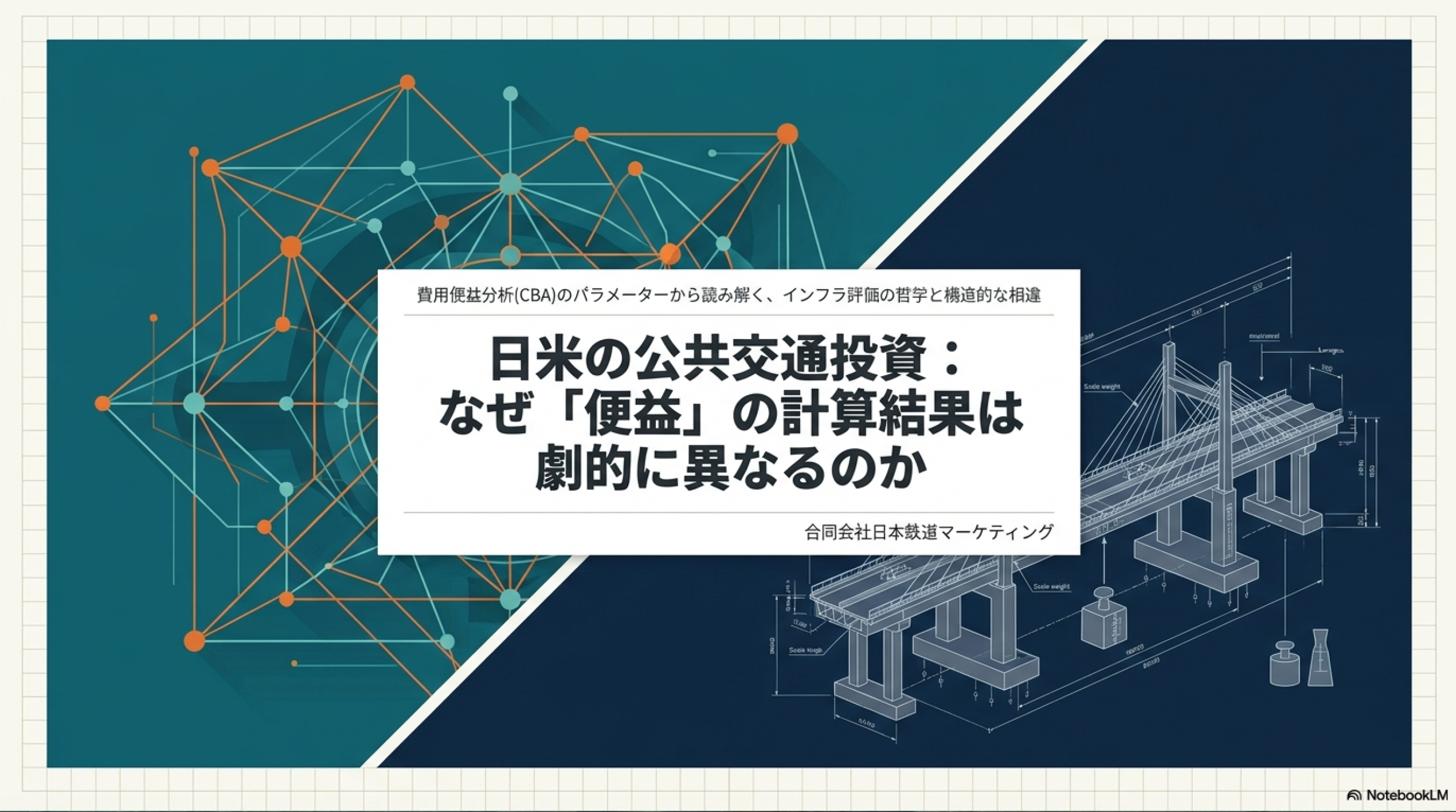 日本における公共交通投資の評価は、国土交通省(MLIT)が策定する「費用便益分析マニュアル」に基づき、客観的な数値評価(B/C)が行われる。これらは行政主導のプロジェクト評価制度(事前評価・再評価・事後評価)の核心をなす 19。