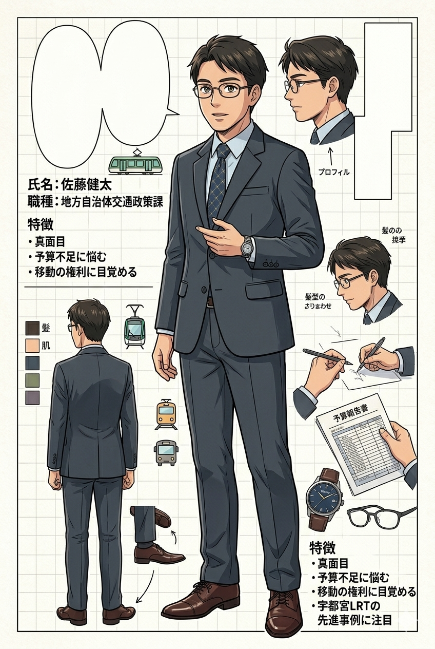 - 真面目で保守的。地方交通の赤字に悩む。現状の厳しさに頭を抱えている。