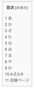 ページの先頭にある目次をクリックすると、該当の用語に飛びます