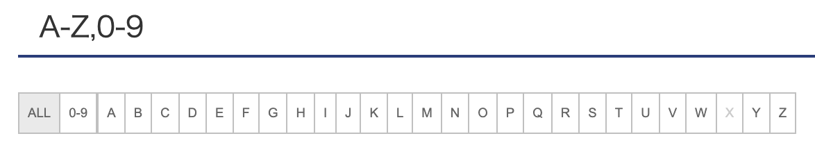 - ALLをクリックすると、日本語を含むすべての用語が表示されるのですが、日本語対応していないので並びは怪しくなります。目次のあーわ の項目をお使いください。